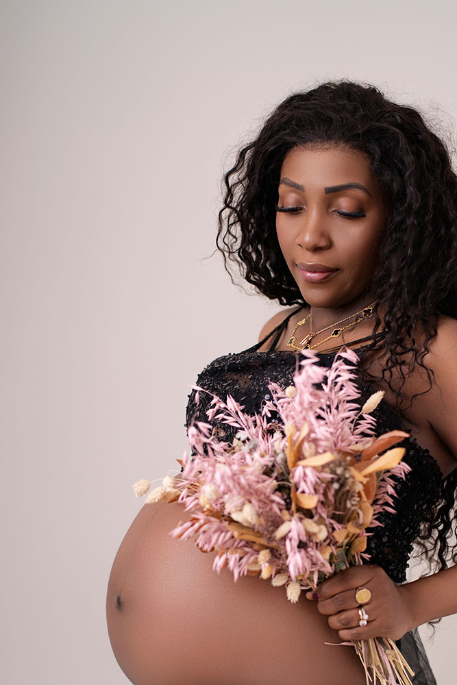 Neben Ihrer guten Laune und Ihrer Vorfreude zum Babybauch Fotoshooting sollten Sie hautfarbene sowie schwarze Unterwäsche dabei haben. Im Winter empfehlen wir auch eine warme Leggins und ein leckeres, heißes Getränk. Außerdem können Sie ein bis zwei Ihrer Lieblingsoutfits einpacken, die den Bauch entweder schön betonen oder ganz freilassen. In unserem Fotostudio finden Sie weitere Accessoires und Kleider, mit denen Sie Ihren Schwangerschaftsbauch hervorheben können.