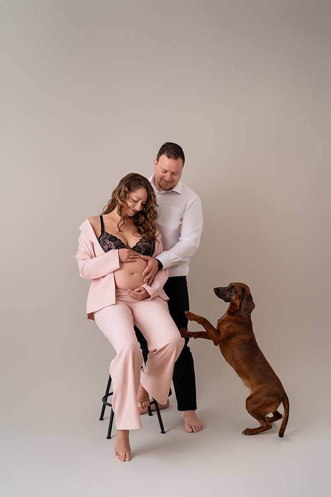 Die Zeit der Schwangerschaft ist für die ganze Familie ein Lebensabschnitt enormer Aufregung. Egal, ob bereits Kinder da sind oder nicht, ein neues Baby reift heran und alle Familienmitglieder sind neun Monate lang voller Ungeduld und Vorfreude. Der Babybauch wächst und wächst und mag auch das Treppensteigen beschwerlicher werden – mit jedem Zentimeter mehr an Babybauch wächst auch die Vorfreude. Diese Lebensphase festzuhalten, ist unmöglich. Doch mit einem Babybauch-Fotoshooting lässt sich zumindest die Erinnerung an die Schwangerschaft wachhalten. In unserem Home-Fotostudio in München Unterschleißheim oder draußen in der Umgebung setzen wir Ihren Schwangerschaftsbauch in Szene und halten diesen besonderen Lebensabschnitt auf einem Foto für Sie fest.